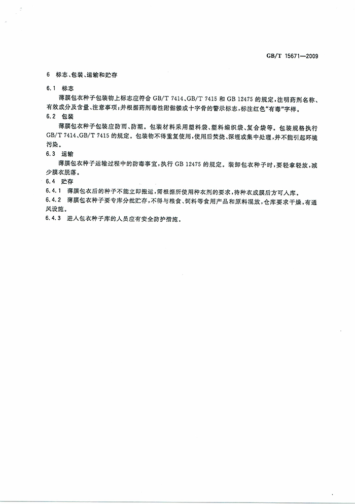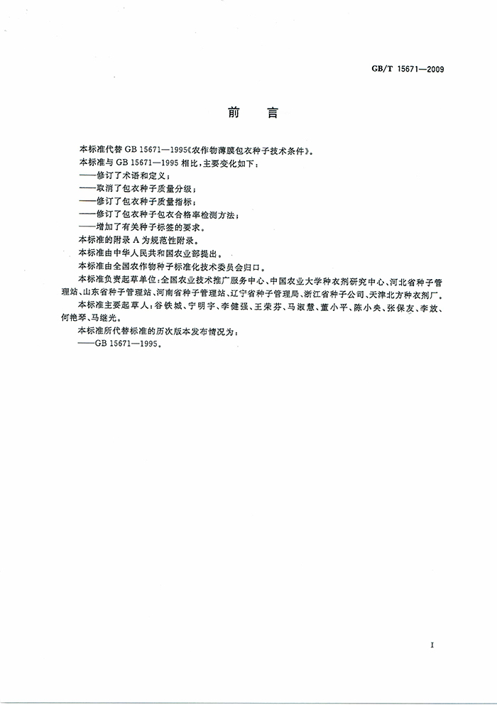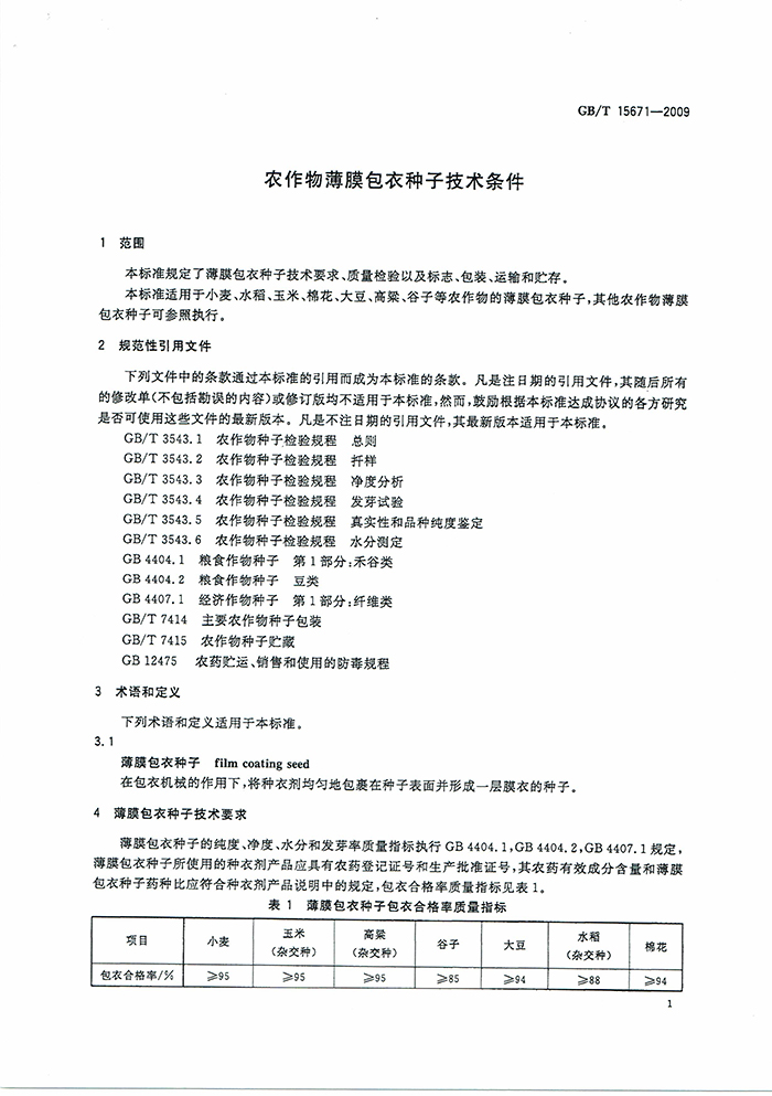 GB/T15671-2009農(nóng)作物薄膜包衣種子技術(shù)條件國(guó)家標(biāo)準(zhǔn)